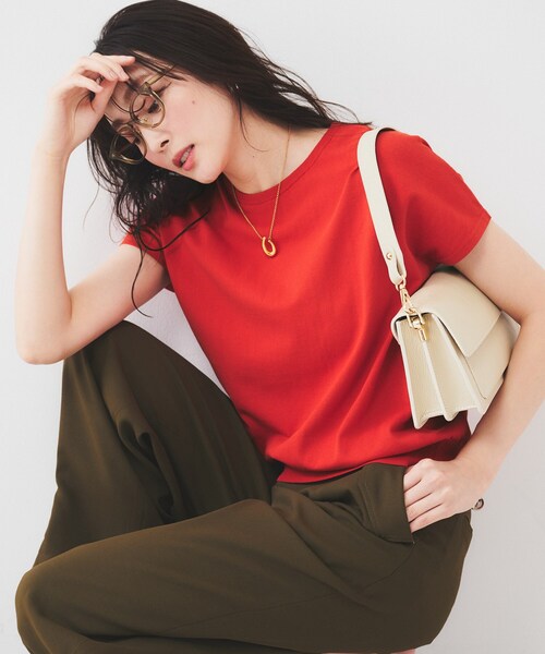 【デザイン】 さらっとした肌触りが特徴の強撚コットンを使用した清涼感ある夏のコットン素材のベーシックプルオーバー。 着丈、身幅など程よくゆとりがあり、身体のラインを拾いにくいサイジングと肩先までカバーしてくれるフレンチスリーブは、一枚着としてもジャケットのインナー使いにも着回しがきくアイテムになっています。 【素材感】 平均繊維長30mmのインド原産のオーガニックコットンを使用し、エアーで繊維束を収束させて、繊維の毛羽を包み込みながら撚りをかけるコンパクト紡績とガス焼き加工で、糸表面の繊維毛羽を限りなく少なくした50番手の綿糸3本を撚り合わせた、淡色でも透け過ぎず、繊維毛羽が少ないクリーンな表面感と強撚糸ならではの清涼感が特徴のUNTITLED別注素材。 【着こなしポイント】 天然のナチュラル感もありながらもきれい見えする素材感なので、ジャケットのインナーとしてはもちろん、ロングスカートやナロータイト、デニムなどカジュアルなパンツ合わせにも。 おすすめは同素材のカーディガンの第一釦だけを留めてさらっと巻いたり、シンプルにベルトやアクセサリーでアクセントを付けた着こなしもおすすめ。 ※照明の関係により、実際よりも色味が違って見える場合があります。また、パソコン・スマートフォンなどの環境により、若干製品と画像のカラーが異なる場合もございます。 モデル情報:身長161cm B79 W58 H86 着用サイズ:02(M) 店舗へのお問い合わせ商品番号:153-12552 ●製品寸法: 00(XS):着丈54cm B92cm 裄丈31cm 肩幅59cm 01(S):着丈56cm B98cm 裄丈32cm 肩幅61cm 02(M):着丈57cm B102cm 裄丈33cm 肩幅63cm 03(L):着丈59cm B106cm 裄丈34cm 肩幅64cm 04(2LT):着丈61cm B108cm 裄丈34cm 肩幅65cm 44(3L):着丈60cm B116cm 裄丈35cm 肩幅67cm 48(5L):着丈60cm B124cm 裄丈37cm 肩幅70cm 備考: