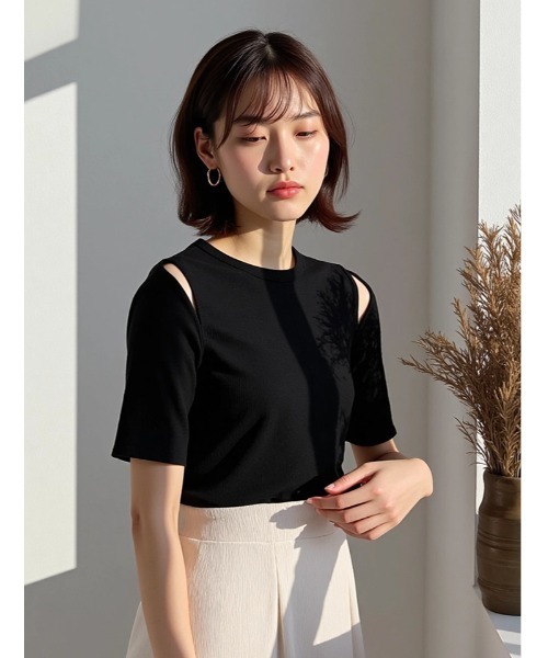 \一点投入でトレンドライクな肌見せスタイルが完成。大人も着やすいカットアウトリブトップス/細リブのカットソー素材で、ストレッチ性があり快適な着心地。トレンドのカットアウトデザインを、開きすぎない絶妙なバランスで取り入れ、大人の女性でも抵抗なく着用いただけます。●さりげない肌見せでトレンド感をプラス 肩のカットアウトは、大胆すぎず上品な肌見せを叶え、ヘルシーでこなれた印象に。●コンパクトなシルエットで着回し力抜群 すっきりとしたコンパクトなシルエットなので、様々なボトムスと相性抜群。●カジュアルにもきれいめにも対応 デニムやワイドパンツと合わせてカジュアルダウンしたり、スカート合わせできれいめスタイルにも。ボトムス次第で印象を変えられる着回し力の高さが魅力です。------------------透け感:ややあり生地の厚さ:普通裏地:なし伸縮性:ありポケット:なし------------------※撮影時のライティング、PCやスマートフォンの環境により写真の色味が実際の商品と異なって見える場合がございます。ご了承の上お買い求め下さいませ。※モデル着用画像は実際の色と多少異なる場合がございますのでマネキン画像をご確認ください。《 お知らせ 》▼商品のお気に入り登録お気に入りアイテムの値下げ・再入荷・在庫1点などの通知を受け取ることができます。▼ブランドのお気に入り登録新商品や再入荷、セール、クーポン配布などお得な情報を受け取ることができます。 ※ご注文いただいた予約商品のお届け時期の確認は、注文履歴ページより行えます。