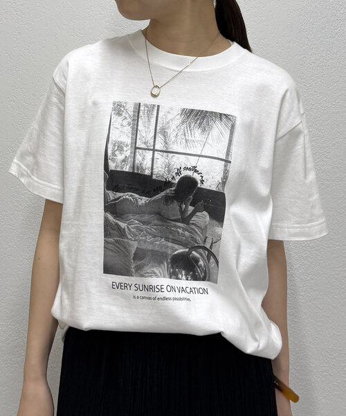 ヴィンテージライクな雰囲気漂うフォトプリントTシャツ ■デザイン コーディネートに取り入れやすいベーシックなシルエットで着回しやすさも◎ ほど良くゆとりのあるサイズ感で、一枚はもちろん、レイヤードスタイルにもぴったりです。 ■コーディネート カジュアルコーデのアクセント使いにも活躍してくれるアイテムです。 ジャケットやカーディガンのインナーとしても着ていただけるので、長いシーズンお使いいただけます。 ■素材・洗濯表示 素材:綿100% 洗濯表示:洗濯機洗い可 裏返してネットに入れて洗濯してください。 漂色製品は色落ちする恐れがありますので他のものと分けて洗い、洗濯後は早めに干してください。 洗濯により若干の縮みが生じる場合がります。 洗濯後は、短時間の脱水をし、形を整えて陰干ししてください。 アイロンの際は、プリント部分には当てないでください。 水洗いを繰り返すことにより、プリント部分が多少薄くなることがありますのでご注意ください。 【♥をクリックでお得な情報をお知らせいたします 】 完売カラーの再入荷やラスト1点の通知、セールの通知を受けとることができます。 【ブランドのお気に入り登録】 新商品や再入荷、いち早くセールやクーポンなどのブランドの情報を受けとることができます。 生産の都合上、お届け時期が前後する場合がございます。 システムの都合上、店舗より入荷が遅れる場合がございます。 実際にお届けする商品と仕様やサイズが異なる場合がございます。 照明や光の当たり具合で色味が違って見える場合があります。