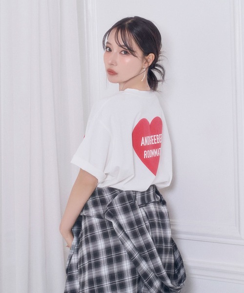 胸元と背中にハートの発泡プリントを施したBIGサイズのTシャツ。ビビッドなプリントが目を引きます。
