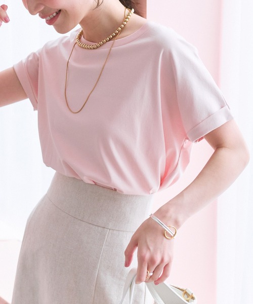 今年も登場!オンオフ着られるこなれTシャツ ●デザイン ゆるっとした落ち感のあるシルエットで、こなれたTシャツカットソー。 袖の折り返しがポイントのドロップショルダーで楽な着心地です。 バックスタイルは腰のあたりでふんわり感がでる立体的なシルエット。 光沢のあるスムース素材を使用していてきれいめに仕上げております。 ひんやりと冷たくシルケットのかかったつややかな表面感が特徴。 カジュアルすぎずきれいめなボトムとも相性よく着て頂けます。 ●ポイント ・ゆるっとした落ち感のあるシルエット ・ドロップショルダーで楽な着心地 ・カジュアルすぎない大人Tシャツ ●おすすめのコーディネート ブラウス感覚で一枚でも様になるアイテム。 レイヤードスタイルのインナーとしてもマルチに活躍。 洗濯方法:手洗い 透け感:なし 裏地:なし 伸縮性:あり 生地の厚さ:ふつう 【注意点】 ※画像の商品は光の照射や角度、お使いのモニター環境により、実物と色味が異なる場合がございます。あらかじめご了承下さいませ。 【お買い物をもっと便利に楽しく♪】 『♡』をクリックでお気に入り登録 ♡「商品のお気に入り登録」で・・・ ラスト1点や再入荷の通知が届きます。 登録して頂いた商品だけが対象となる、あなただけのタイムセールが開催されることも! ♡「ブランドのお気に入り登録」で・・・ 新商品や再入荷など、いち早くブランドのお得な情報を 受け取ることができますので、ご登録をおすすめします!
