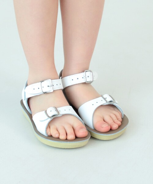 長く愛されるクラシックなデザインダブルストラップのレザーサンダル。どちらのストラップも調節可能なので、お子様の足に合わせたお好みのフィット感で履けるのが嬉しいですね。クッション性抜群のウレタンソールとさびにくい加工のバックルを採用。冷水での軽い水洗いが可能の点も、こども用としては嬉しいポイントです。【対象年齢:およそ1~3歳】※ストラップ部分は面ファスナー仕様となります。※センチ表記は箱記載サイズやタグ記載サイズと異なる場合がございます。 アイテムサイズをご参照の上お買い求めください。※バックルはダミーの為、長さ調整はできません。ベルクロの留め位置にてご調整ください。SALT WATER SANDALS / ソルト ウォーター サンダル1944年、アメリカのST.LOUISEで創業されたレザーサンダル専門のメーカー。防水、防錆加工を施した特殊な皮革(床革)、付属品を使用したサンダルは、速乾性に優れ、海や川での水遊びに対応します。現在では大人用モデルもラインアップに加わり、水洗いが可能な画期的な製品が世界中で人気を博しています。