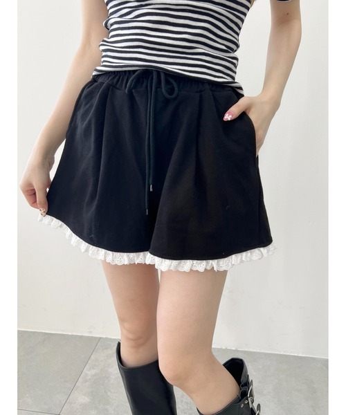 ミニレースが付いたガーリーな雰囲気がかわいい 動きやすい生地にでゆるっとした抜け感のあるコーデに。 ベーシックなTシャツとのコーデはもちろん、 レースアイテムやフリルとの相性も抜群です。 ▼便利なお気に入り登録▼ 商品のお気に入り登録で、再入荷の通知・ラスト1点・お得なセールの通知を受け取ることができます。 ブランドのお気に入り登録で、新商品や再入荷など、さらにお得な通知を受け取れます。 《Attention》 ・撮影場所や照明の照射・角度、お使いのモニター環境により色味や仕様、加工、カラーが若干異なる場合がございます。 ・商品によっては1?3cm程度の採寸誤差がある場合がございます。 ・移染等防止のため水や汗で濡れたまま放置することは避けて頂き、濃色アイテムは単体でのお洗濯をお願い致します。 ・素材臭がある場合は陰干しをお願いいたします。 ・アテンションタグを必ずご確認の上ご使用下さい。