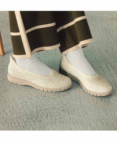 着脱スムーズ 歩けばらくちん 伸びやかきれい どこまでも歩けそうなスニーカー底のパンプスは、きれいめ顔で手を使わずにするんと履けるノンストレス設計。 軽くて通気性のいいニット素材だから、伸びやかに足にフィットして、甲高幅広さんもらくらく。 シンプルなデザインだから、きちんと感が欲しい日にも活躍します。 ※フェリシモの商品には、紐などでくくられている紙タグは付属しておりません。