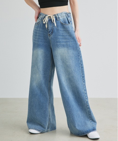 ルーズさとハイウエストで魅せるデニムパンツ 理想的なスタイルアップ叶える絶妙なゆるさ。 ワイドながらもスッと落ちるシルエットは脚長効果も抜群です。 ■point ・アクセントになるウエストリボン ・ゆったりとしたワイドシルエット ・こなれ感あるヴィンテージライクな色味 ■detail オールシーズン着用できる程良い厚み。 綿混素材の柔らかなデニムでストレスフリーな履き心地なのも嬉しいポイントです。 Mサイズ・Lサイズの2サイズ展開でご用意しております。 ■fabric 肌触りの良いソフトな綿混デニム ……………………………… 伸縮性:なし 透け感:なし 裏地:なし ポケット:あり ……………………………… ■coordinate 存在感あるボトムスなのでシンプルなトップスでもお洒落に。 ハイウエストなのでショート丈トップスと合わせるとトレンド感あるコーデが完成します。 洗濯表記 【洗濯処理】 水温40℃を限度に、手洗いできます 【漂白処理】 漂白できません 【タンブル乾燥】 タンブル乾燥禁止です 【自然乾燥】 日陰で、吊り干しします 【アイロン仕上げ】 120℃を限度に、アイロンが使えます 【ドライクリーニング】 石油系溶剤又はデカメチルペンタシクロシロキサンによる、弱いドライクリーニングができます 【ウエットクリーニング】 非常に弱い操作による、ウエットクリーニングができます 【洗濯表記説明文】 単独で洗う 蛍光増白剤禁止 あて布使用 Attention 【お取り扱い上のご注意】 この商品は、非常に色落ち・色移りしますのでご着用の際は下記の点にご注意ください。 ・白、単色系衣料品と重ね合わせてご着用されると、摩擦によって他の衣料品に色移りすることがあります。 ・白、ベージュ系のハンドバッグや靴、アクセサリー等に摩擦によって色移りすることがあります。 ・雨の日や汗等、ぬれた状態はさらに他の衣料品などへの色落ち、色移りしやすくなります。 ・こすられたり、もまれたりした場合、その部分の素材表面が毛羽立ったり、白っぽくなることがあります。 ・色落ちしますので、洗濯やクリーニングの際は、他の物と分けて処理して下さい。 ・保管の際は、色移りを防ぐため、白、淡色系の衣料品と重ね合わせないでください。 お取り扱いは、表示記号を御確認の上、お願い致します。
