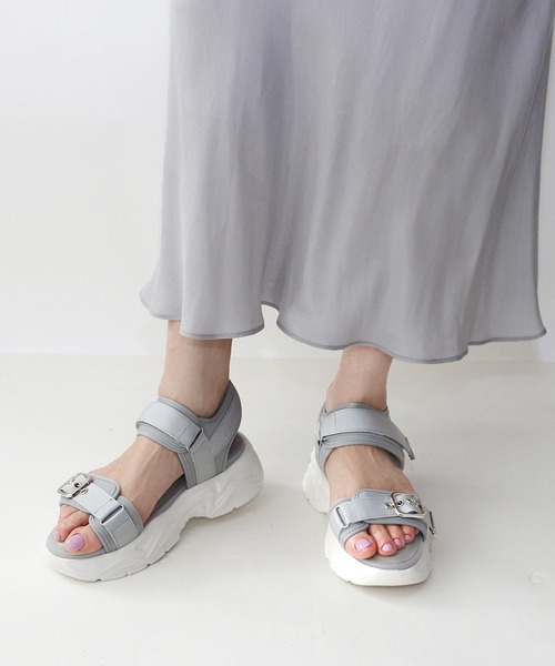 【Fin 2025Summer collection】■メタルパーツが足元にアクセントをプラス■ベルトデザインが足元に程よいスパイスをプラスするFin(フィン)のベルテッド厚底ベルクロスポーツサンダルが登場しました。今季も大注目の厚底スニーカーソールは5.5cmと程よい高さなので楽なのにスタイルアップも叶うのが嬉しい。上品な金具使いがカジュアルなデザインの中に女性らしさも演出してくれるので大人の女性もコーデに取り入れやすい一足に仕上げました。■今季マストなスポサンでカジュアルコーデの完成■中敷きの下には低反発クッションをセットしているので足裏にも優しく、スニーカーソールなので長時間の歩行や春夏のレジャーなどにも最適です。ベルクロデザインは足幅に合わせて調節可能で、足首も固定されているデザインなので安定感がある楽な履き心地が魅力的。デニムやワイドパンツに合わせるのはもちろんですが、タイトスカートやプリーツスカート、ワンピースなどのスタイリングに取り入れるのも◎。どんなコーデにもすんなり馴染む一足はカラーによって雰囲気は変わるのでお気に入りの一足をチョイスして。■低反発スポンジ入り(低反発スポンジを使用することにより歩行時の衝撃をやわらげます。)*低反発スポンジ・・・圧力を分散し、包み込む様なクッション感が特徴です。スタッフによるサイズ感■普段のサイズ:Lサイズ 足幅E(普通)■着用サイズ:Lサイズ■感想:普段はLサイズを履いていますが、素足で合わせてつま先のベルトがややゆるかったです。つま先のベルト部分には4段階調整可能な穴があるので、位置を調整するとちょうど良い履き心地になりました。ベルト穴で調整できるので、ややゆとりがあってもフィットさせることができます。程よい厚底で安定した履き心地をキープできるので、長時間でも安心して着用することができそうです。ベルトデザインをスポーティーな厚底ソールと合わせているので、カジュアルさのバランスが良いサンダルになっています!※上記は弊社スタッフの個人的な感想になります。お客様により感想が異なりますため、あくまで参考としてご覧下さい。<サイズスペック>Sサイズ/アッパー幅:約13.0cm ソール幅:約9.5cm 重さ:約239gMサイズ/アッパー幅:約13.5cm ソール幅:約10.0cm 重さ:約256gLサイズ/アッパー幅:約14.0cm ソール幅:約10.2cm 重さ:約272gLLサイズ/アッパー幅:約14.5cm ソール幅:約10.5cm 重さ:約280g・サイズスペックについてはFin独自の方法により採寸しております。・同一商品でも個体差が生じるため、採寸内容に若干の差が生じる場合がございます。