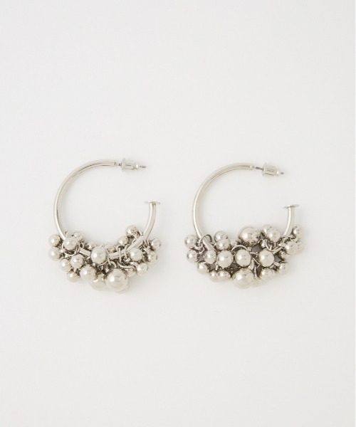 ■POINT:存在感のあるサイズ違いのメタルビーズデザインが優しく揺れ、上品な印象に仕上げてくれるフープピアス。■DETAIL:程よいサイズ感のフープで大小のメタルビーズが耳元で繊細なイメージを演出させてくれます。■STYLING:普段使いはもちろん、モードやエレガント、オケージョンコーデにも合わせやすいアイテム。■FABRIC/MATERIAL:真鍮素材を使用しています。※チタンポストを使用しています。体質によってはかぶれ等を生じる場合がありますので、皮膚に異常を感じた時は、ご使用をお止めいただき、専門医にご相談下さい。水、汗、消毒液などに触れたり、皮脂及び汚れの蓄積により変色や変質する場合があります。定期的にふき取りのメンテナンスをお願いします。消毒液が製品に直接かかる事が無いようご注意下さい。[注意事項]※画像の商品はサンプルです。実際の商品と仕様、加工が若干異なる場合があります。※画像の商品は光の照射や角度、お使いのモニター環境により、実物と色味が異なる場合がございます。※着用、お取り扱いの際は、アテンションタグをご確認ください。※一部予約商品につきましては生産上の都合によりお届け予定日や店頭発売と前後する場合もございます。※追加生産商品は、一部の店舗、通販で販売中の場合がございます。予めご了承下さい。【SLY/スライ】「Casual」「Girly」「Mode」をベースに発信する、ディテールへのこだわりが詰まった、どこか必ず女性らしさを感じるアーバンスタイル。 さまざまなエッセンスをミックスした、時代の空気を体現するコレクションを展開。 ▼商品のお気に入り登録 お気に入りアイテムの値下げ・再入荷・在庫5点などの通知を受け取ることができます。 ▼ブランドのお気に入り 登録新商品や再入荷、セール、クーポン配布などお得な情報を受け取ることができます。※こちらの商品はSLY独自の採寸方法となっています。本サイトのサイズガイドと採寸方法が異なる場合がありますのでご了承ください。