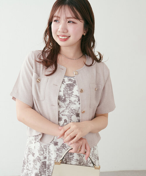 【2025SS natural couture】インフルエンサー かなみ(@canami__n)考案女性らしさと、大人上品さ漂う。夏の羽織はコレ!■Design 1枚あると重宝間違いなし!肩幅が気になる方も安心してお召いただける、コンパクトでありながらほんのりゆとりを持たせたジャケット風トップス。ショート丈なので、羽織だけでなくインしないコーデとしても活躍。金釦は、光沢あるいびつで表面感があるデザインで、女性らしさと上品さを演出。■Styling着回し万能なアイテムを選ばないデザインです。お好みのアイテムでコーディネートしていただけます。きれいめ派ならウエストマークのあるワンピースやスカートと相性が良く 、カジュアル派ならタイトスカートやデニム合わせでスタイリッシュなコーディネートも◎■Fabric着心地のいいさらっとした薄手のサマーツイード生地。夏でも涼しく着用していただきやすい、ほんのり透け感のある薄手の素材です。着回し万能な、オフ・ベージュ・ネイビーの他、爽やかに冷涼感溢れるサックスブルーをご用意しました!体のラインを拾いにくい、コンパクト見えする程よくゆとりを持たせたサイズ感です。=========================透け感:ややあり裏地:なし伸縮性:なし光沢感:なし生地感:さらっとした生地感========================= ※着用、お取り扱いの際は、商品に付いている品質表示とアテンションタグを必ずご確認ください。【お気に入り登録でお得な情報がいっぱい】・「商品のお気に入り登録」で再入荷通知や、ラスト1点の通知、セール通知をいち早く受け取ることができます。・「ブランドのお気に入り登録」で新商品や再入荷など、お得な情報を受け取ることができます!※店舗の入荷時期は商品によって異なります。店頭の在庫状況につきましては各店舗にてお問い合わせください。※撮影時の光の関係で、画面上の画像と実際のお色とでは若干の色差が生じる可能性がございます。また、ご覧いただいているモニター画面や、お使いのブラウザによっても、お色の違いがございますことをあらかじめご了承くださいませ。202504022025SS_natu25SS