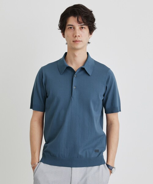 テーラード設計を用いた着心地と美しさを備えた『テーラードニット』 接触冷感&ウォッシャブル 夏ジャケスタイルから一枚着としてもおススメ 【デザインポイント】 着心地も見た目もジャケットとの相性良好なニットポロシャツです。 ハイゲージの繊細な編地も品よくキレイめ見えでON/OFF使いにぴったり。 カットソー素材とは一味違うニットならではの大人のリュクスな雰囲気。 夏ジャケスタイルのインナー合わせはもちろん、一枚着としても整然としたスタイリングに仕上がるおススメアイテムです。 立体的な衿が首元を整然と魅せジャケットとの相性がよく、一枚着としても使えるニットポロです。 ■テーラードジャケットのようなパターン設計 ・卵形のアームホール設計 ・前後差のある袖山 ・身体の厚みに合わせた肩線設計 アームホール下(釜底)のシワを軽減し、且つ腕の収まりを良くし品のある綺麗なシルエットに仕上げ。 スタイリングで合わせるジャケットの釜底への溜まりを抑えた設計で収まりが良く快適な着心地。 ・前身幅を小さく、後身幅を大きく設計することで身体に合わせた立体的でキレイなシルエット。 ・台衿部分と羽根衿部分の編地をそれぞれで手間暇かけた工程を入れることで立体感ある衿に仕上げています。 ■美しい佇まいと機能性を持つこだわり編地 ・繊細で綺麗なシルエットを作り出す、ハリ・コシのあるしっかりハイゲージ編地 ・接触冷感効果を持つ糸使用 ・家庭洗濯で洗えて簡単ケア ※照明の関係により、実際よりも色味が違って見える場合があります。また、パソコン・スマートフォンなどの環境により、若干製品と画像のカラーが異なる場合もございます。 モデル情報:身長182cm B92 W80 H93 着用サイズ:03(L) 店舗へのお問い合わせ商品番号:070-12022 ●製品寸法: 02(M):着丈65cm B96cm 袖丈24cm 肩幅41cm 03(L):着丈67cm B102cm 袖丈26cm 肩幅43cm 04(LL):着丈69cm B108cm 袖丈28cm 肩幅45cm 備考: