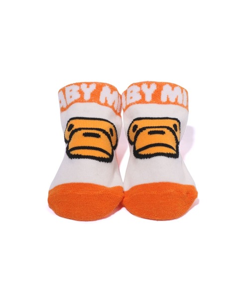 ジャガード織りの生地を使用したキッズベビー用のクルー丈靴下。 リブ部分にBABY MILOロゴ、フロント部分にMILO FACEのデザイン、底面にSTAモチーフのすべり止めが施されており、細部までこだわったアイテム。