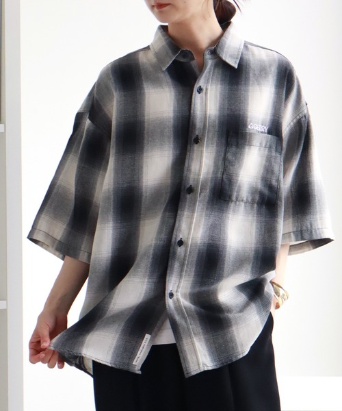【GERRY】着回し抜群、デイリーユースに最適な半袖オンブレチェックシャツ ゆったりとした絶妙なルーズさが魅力 -シルエット・デザイン- 左胸のポケットとその上に刺繍で配されたワンポイントロゴがアクセントになったオーバーサイズの半袖オンブレチェックシャツ。 バックの首元にもロゴ刺繍が配され、サラッと覗く前立ての裾部分にはピスネームが縫い付けられています。 1枚での着用だけでなく、レイヤードスタイルとしても使える万能な1着となっています。 デニムやチノパンでカジュアル・ストリートな雰囲気はもちろん、ワイドパンツやスラックスなどの様々なテイストのボトムスとの相性も抜群です。 ユルッとした程よくルーズなシルエットで、性別問わずユニセックスで着用して頂けます。 -ファブリック- コットンとポリエステルの混紡素材で、柔らかく肌触りが良く、快適な着心地です。 シワになりにくく、お手入れも簡単です。 ■GERRY/ジェリー 1950年代のアメリカでスタートしたアウトドアブランド。 アメリカのエベレスト登山隊のオフィシャルユニフォームとして採用されたことで、GERRYは一躍注目アウトドアブランドとしてアメリカ中にその名を知らしめました。 ★商品のお気に入り登録→【カートに入れる】右側のハートマークをクリック 完売カラーの再入荷通知や、ラスト1点の通知、セールの通知も受け取ることができます。 ※店頭及び屋外での撮影画像は、光の当たり具合で色味が違って見える場合があります。またご覧いただきますモニターや使用環境により実際の商品と多少色味が異なって表示される場合がございます。 予めご了承をお願いいたします。