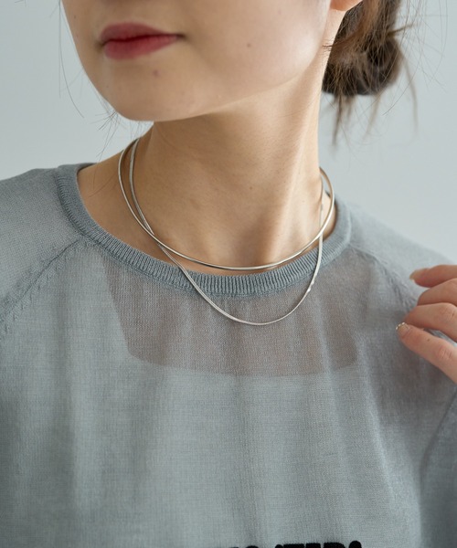 ピュアルセシン 2025 SS collection【Mix Mix Mix】●商品のお気に入り登録クーポンやタイムセール、再入荷通知やラスト1点などお得な情報を受け取ることができます。ご登録をお忘れなく◎メタルにチェーンを組み合わせた珍しい2連デザインのチョーカー。1本1本はシンプルで華奢ながら2連にすることでボリューム感が出て、首元に華やかさをプラスします。このアイテムを1つ付けるだけで楽に重ね付けが叶い、こなれ感のある洗練されたスタイルに仕上がります。チョーカーデザインなので、首にはめるだけで着脱が簡単なのも嬉しいポイント。鎖骨の上に乗る長さでネックラインの華奢さを上品に引き立てます。普段使いはもちろん、オケージョンシーンなどにもおすすめです。【チョーカーサイズ】縦:10.5cm 横:12cm【スネークチェーンサイズ】全長:34cm ※着用、お取り扱いの際は、商品についている品質表示とアテンションタグを必ずご確認下さい。※撮影場所やお使いのモニター環境により若干お色味が異なる場合がございます。特にロケの撮影では明るく見える傾向にございます。 ※予約商品はサンプルで撮影をしております。若干の仕様が変更になる場合がございますので予めご了承の上ご注文くださいますようお願いいたします。【予約品の入荷時期について】店舗入荷時期と予約商品のお届け時期が異なる場合がございますので、予めご了承ください