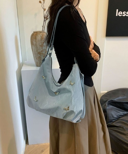 【注意】こちらは在庫のみとなっております。再入荷は致しません。シルバーのバタフライがY2Kっぽいバッグショルダーバッグとしてはもちろん、リュックバッグとしても使える2wayタイプです♪【仕様】■マチ/ 有(約13.6cm)■内側ポケット/ 無【サイズ】■本体 /縦:約26.3cm × 横:約35cm※平置き採寸しております。 商品により、若干サイズが異なる場合がございます。 ご了承くださいますようお願いいたします。【urge select】”日々が楽しく、感じられる”をテーマに、カジュアルで明るいポップな遊び心のあるアイテムを揃えています。