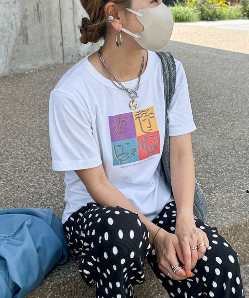 feepur by saya【大人気インフルエンサー@saya_e__wearさんとの25ssコラボ新作!】◆Detailゆるっと、どこか脱力感のあるカラフルなアートプリントが施された唯一無二なTシャツ。一枚着としてはもちろん、サロペットやワンピースなどともレイヤードしやすいようにとサイズ感に拘った一着です◎すっきりと着られるけれど、身体のラインを拾わない絶妙なシルエットで着やすさ抜群。滑らかな生地感も肌当たりがよく、暑い夏も快適に過ごしていただけます。◆Fabric------------------------------透け感:なし(淡色ややあり)伸縮性:あり光沢:なし生地の厚さ:★★★☆☆------------------------------※汗や水、摩擦により他のものに色移りすることがありますのでご注意ください。※濃色製品は色移りすることがありますので、他の物と分けて洗濯してください。※生産時期によりサイズや質感・色味に若干の個体差がみられる場合がございます。※商品画像は、光の当たり具合やパソコンなどの閲覧環境により、実際の色味と異なって見える場合がございます。予めご了承ください。※着用、お取り扱いの際は、商品についている品質表示とアテンションタグを必ずご確認ください。◆Information欲しいitemをお気に入り登録(♡マークをclick) ・お買いのがし対策…完売itemの再入荷やラスト1点の情報をお知らせ ・欲しいitemをお得にget…pricedownになったらいち早くお知らせ ・スムーズ検索…ZOZOのお気に入りアイテムページで簡単checkできるから、再検索不要♪