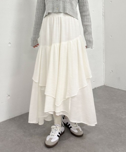 ■主役級スカート!■ archivesで大人気のティアードスカートに新作が登場。 イレヘム×ティアードで動きのあるデザイン。 ウエストは履きやすいオールゴム仕様。 インスタイルもごわつかずに着こなせます。 ティアードが目を引くのでトップスはシンプルなものがおすすめ。 ブルゾンやGジャンと合わせれば春らしいスタイリングに♪ ーーーーーーーーーーーーーーー 透け感:なし 裏地:あり 伸縮性:あり 光沢感:微光沢 生地厚さ:普通 洗濯方法:洗濯可 ※詳しいお手入れ方法は商品についているタグをご覧ください ーーーーーーーーーーーーーーー ※ご利用のモニター環境により、実際の色味と多少異なる場合がございます。 … information … 欲しいitemをお気に入り登録(♡マークをclick) ・お買いのがし対策…完売itemの再入荷やラスト1点の情報をお知らせ ・欲しいitemをお得にget…pricedownになったらいち早くお知らせ ・スムーズ検索…ZOZOのお気に入りアイテムページで簡単checkできるから、再検索不要♪