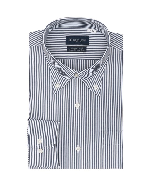 ◆綿100% 超形態安定シャツ◆綿100%なのにお手入れ簡単 メンズ超形態安定シャツ通常の形態安定加工商品よりもさらに 高い形態安定性(W&W性)を取得。着心地の良さと高い機能性、両方を 追及した価値ある逸品をお届けします。濃色ネイビーのストライプ柄は スラックスやチノパン等、ボトムスを 変えると、コーデの幅を広げてくれます。衿がキレイなロールを描いてくれる ボタンダウン衿はビジネス・カジュアル 両シーンで使い勝手抜群の衿型です。■仕様カフリンクス使用可能な兼用カフス(アジャストボタン)中丸カフス胸ポケット(左胸)付き(ホームベース型)背タック・背ダーツなし※サイズ[首回り42cm]のお届け商品の縫い付けタグはLL表記、 サイズ[首回り43cm]のお届け商品の縫い付けタグはXL表記でございます。 ZOZOTOWNの検索サイズと異なりますのでご注意ください。【BRICK HOUSE by Tokyo Shirts / ブリックハウス バイ トウキョウシャツ】業界トップ水準を誇るノーアイロンの形態安定加工は自宅で洗濯可能でお手入れ簡単!高度な縫製技術を用いた高付加価値シャツでありながら選ぶことを気軽に楽しめます。ベーシックから多様なデザインまで幅広いバリエーションで豊富なサイズ展開で、ディテールの隅々にまで織り込んで一枚一枚丁寧に仕立てられたシャツです。