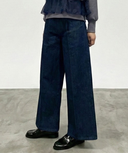程よいゆとりで、身体のラインを拾わないワイドデニムパンツタックデザインが目を惹くワイドシルエットデニム。フロントにはタックを入れて立体感を持たせメリハリあるシルエットに仕上げました。加工やカラー展開も今年らしいバリエーションでご用意しました。■スタイリングポイント・シャツやニットなどカジュアルなトップスとの合わせがおすすめ・ウエストのタックデザインを活かしたインスタイルやショート丈のトップスとの相性も◎。■サイズ感腰周りはすっきり、ウエストゴム仕様でお尻周りが張って見えないサイズ感------------------------------透け感:なし伸縮性:なし光沢感:なし生地の厚さ:ふつうポケット:あり裏地:なしウエストゴム:なしファスナー:フロントファスナー------------------------------《INFORMATION》◆気になる商品をお気に入り登録ハートをクリックして《お気に入り登録》がオススメです!《ATTENTION》▼商品画像は撮影時のライティング、ご覧になっているモニター・PC環境により、実際の商品と色味が異なって見える場合がございます。▼サイト上のカラー・サイズ表記と商品タグのカラー名・サイズ名が異なる場合がございます。▼着用、お取り扱いの際は商品についておりますアテンションタグ、洗濯ネームを必ずご確認ください。▼生産時期により、色・素材・サイズ感など多少異なる場合がございます。▼商品によっては、繊維や染料のにおいが感じられる場合がございます。数日のご使用や陰干しなどで匂いはほとんど感じられなくなりますのでお試しください。▼通販の特性上、到着時には畳みシワがついている場合がございます。【Muscat /マスカット】「今日は、こんな気分でいたいから。」凛としたい日も、力を抜きたい日も、なにもしたくない日もある。気分には、ちゃんと理由があってそれが“わたし”をつくっている。背すじをそっと伸ばしたくなる朝もあればやわらかく流れたい午後もある。そんな気持ちに寄り添う服が、今日という一日を、すこしだけ やさしくしてくれる。服を選ぶことは、気分を大切にすること。誰かのためじゃなく、“いまのわたし”のために、服を選ぼう。
