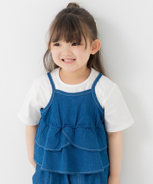毎日のコーデにプラスワンできるダンガリーのティアードキャミソール。前後どちらにも着用可能!動くたびに揺れるフリルのシルエットが可愛さを引き立てます。 1枚重ねるだけでトレンド感たっぷりのレイヤードスタイルが完成!