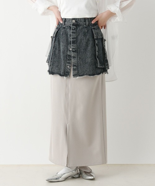 3WAYで穿ける◎レイヤードスカートセットが登場。■おすすめの着こなし☆ベーシックスタイルには・・・ロゴTやシアーシャツなどと合わせた、シンプルな着こなしがおすすめです◎存在感のあるスカートなので、ベーシックなトップスと合わせてもトレンドライクな着こなしが叶います。☆マルチWAYで着るなら・・・デニムスカートにスラックスをレイヤードした今年らしい着こなしがおすすめ◎ロングスカートはきれいめな印象で穿けるので、シャツやジャケットと合わせたクリーンなスタイルとも相性抜群です。■ポイント今年らしいマルチWAYスカートが登場。Iラインスカート単体でも着映えするアイテムで、幅広いトップスと好相性なのが嬉しいポイント◎取り外し可能なデニムスカートなので、お持ちのパンツやスカートとレイヤードして着ていただけます。TR素材を使用しているので、穿くだけで綺麗見えする優秀アイテム。セットで着ていただくことで、一気にトラッドな雰囲気を演出してくれるスカートです。■素材柔らかく、肌触りの良い混紡素材を使用。程よく厚みのあるデニム素材×綺麗見えするTR素材を使用しているので、1着でこなれ感溢れるスタイリングになります◎ーーーミニスカート採寸スカート丈:37 ウエスト:69~83