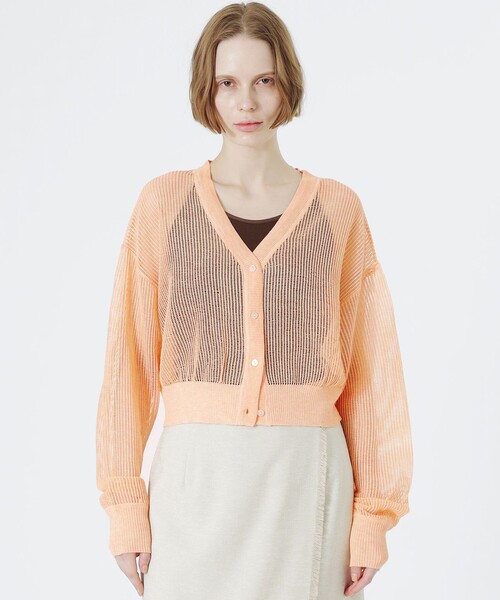 見た目も涼し気で、程よい透け感がスタイリングにアクセントを加えてくれるメッシュニットカーディガン お好みの色をチョイスするのも楽しくなる、豊富なカラー展開。 【素材】 レーヨン×ポリエステルの編地を使用。 ドライタッチで着る人にも見る人にも涼しげな印象を与えくれます。 メッシュの編み方にもこだわり、スクエアに編み上げたメッシュ地により、リッチな表情に仕上げました。 【シルエット/デザイン】 品のあるナチュラルな表情と軽やかな雰囲気がある、ゆるやかなオフボディのシルエット。 ショート丈でシンプルなアイテムにさっと羽織るだけでも、旬なスタイリングが完成。 メッシュの透け感により、合わせるインナー次第で様々な表情に着こなすことができます。 【シルエット/その他】 トップスとしても羽織としても使えるので、真夏の冷房対策などロングシーズン活躍。 発色の良いカラーなので、インナーに軽く羽織って頂いたり、デニム合わせでもこなれ感を演出してくれる1枚です。 肩に掛けたり、ビビットなカラーをスタイリングにアクセントとしてプラスするのも◎ ショート丈がハイウエストボトムスとも好相性で全体のバランスをとってくれる優秀アイテムです。 【お手入れ方法】 こちらの商品は、手洗いでのお洗濯が可能です。 ━━━━━━━━━━━━━━━━━━━━━━━━━━ お買い物をお楽しみ頂くために <商品のお気に入り登録> 完売カラーの再入荷通知など、お得な情報をお届けします。 <注意事項> この商品はサンプルでの撮影を行っています。 実際の商品とイメージが異なる場合がございます。 撮影環境により、光の当たり具合で色味が違って見える場合があります。あらかじめご了承下さい。