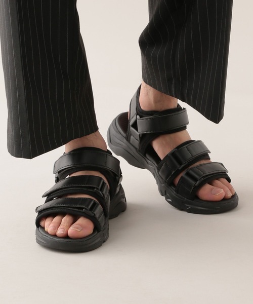 軽量で着脱も簡単なスポーツサンダル様々なシーンで活躍する2種類のストラップをご用意ーーー■ポイント様々なシーンで使える履き心地の良いスポーツサンダルが登場。合成素材で仕上げた厚底ヒールは、軽量でありながらもクッション性が抜群です。テープストラップを剥がすだけで簡単に着脱が出来るので、毎日履きたくなるような楽さが特徴。2種類のストラップをご用意しており、カジュアルなナイロンテープと上品なフェイクレザーテープからお選び頂けます。ナイロンタイプは丈夫な素材なので、日常シーンだけでなくアウトドアシーンなどでもおすすめです。フェイクレザータイプはスムースな仕上がりなので、スラックスなどのきれいめパンツとも相性が良くデートシーンにもおすすめです。ーーー