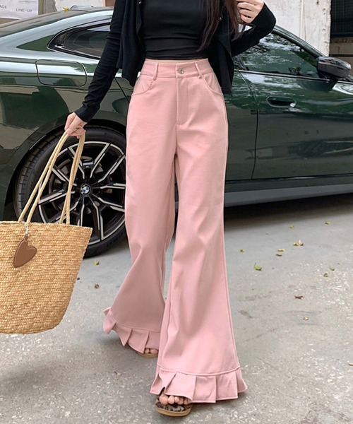 エレガントさとリラクシー感を兼ね備えた、技ありワイドパンツ。■デザイン・裾に施されたプリーツが印象的な、フレアシルエットのワイドパンツ。・ウエストはすっきりと、裾に向かってゆるやかに広がるラインが美脚見えを叶えます。・フロントはシンプルで、スタイリングの主役にも脇役にもなれる万能デザイン。■素材カジュアルなコットン混素材でデイリーコーデに最適◎シワになりにくく、お手入れも簡単。さらっとした肌触りで、春〜秋までロングシーズン活躍。■スタイリング・シンプルなトップスを合わせるだけで、スタイリングがぐっと華やかに。・ショート丈やコンパクトなトップスと合わせるとバランス良くまとまります。・ブラウス+パンプスで綺麗めコーデ、Tシャツ+スニーカーで抜け感のあるカジュアルも◎------------------------------透け感:なし伸縮性:ややあり裏地:なし------------------------------------------------------------【スタッフが着用しました!】身長:158cm普段着用サイズ:S~Mサイズ今回着用サイズ:Mサイズ・着用感ゆったりとしたサイズ感で丈感も長めで着用できました◎ワイドでも広がりすぎず、すとんと落ちるフレアラインで脚長効果も期待できます。デザインのあるパンツなのでシンプルなTシャツと合わせるだけで可愛いです。------------------------------------------------【お買い物をよりお楽しみいただく為に】▼お気に入り登録サイズ・カラーを指定して、♡マークをクリック![セール通知・ラスト1点の通知・完売アイテムの再入荷通知]を受け取ることができます。▼ブランドのお気に入り登録新商品や再入荷、タイムセールやクーポン等いち早くブランドのお得な情報を受け取ることができます。------------------------------------------------韓国 オフィスカジュアル春服 ガーリー大人カジュアル