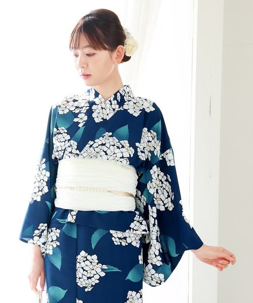 【完売】レディース ワンピース 浴衣 セット 浴衣 簡単 レディース 吸水速乾 ポリエステル浴衣 浴衣2点セット(OP浴衣+しわ兵児帯)「アジサイ・ダリア 4柄」Fサイズ セパレート浴衣 KIMONOMACHI オリジナル