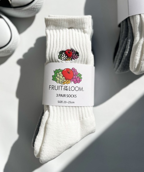 【FRUIT OF THE LOOM】フルーツオブザルーム フルーツロゴ刺繍 FLT クルーソックス 3Pセット 16156600 16309100
