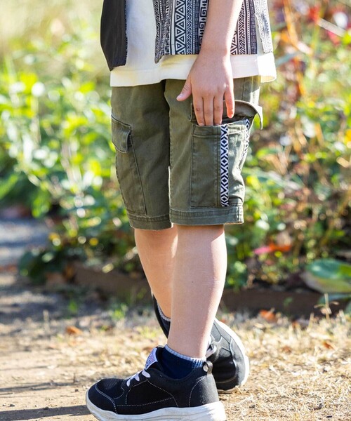 カーゴポケット付きのクライマーパンツ。(5.5分丈) トレンド感のある左ポケットのチロリアンテープがコーデのアクセントに♪ ツイル素材にバイオウォッシュ加工を施すことで、ヴィンテージライクな風合いに仕上げました。 カラーはグリーン(カーキ)とグレーでの2色展開。 仲良しなお友達や、兄弟との色違いコーデにも◎ お揃いシリーズのTシャツと合わせて、セットアップでご着用いただくのもおすすめです。 < セットアップ可能 > 1355-73004:袖柄テープ天竺Tシャツ 1350-73009:5.5分丈柄テープポケットクライマーツイルパンツ ポケット:あり ※ 渡り幅は、多少の誤差が生じる事がございます。あらかじめご了承下さい。 【 EPIC ADVENTURE 】 サファリパークへお出かけし、 冒険気分を楽しむ男の子がテーマのコレクション。 ネイティブ柄やディテールで エスニックな雰囲気を取り入れたスタイリングを提案。 様々な動物や恐竜も登場し、ワクワクが詰まった世界観を表現。 【 WASK(ワスク)】 WEEAGEDSAUCYKID「我々は小生意気な子供である・・・」 自由で遊び心満載な男の子たちへ アメリカンテイストをベースにその時々のトレンドや異なる要素をプラス エッジの効いたカジュアルスタイルをキッズウェアで表現