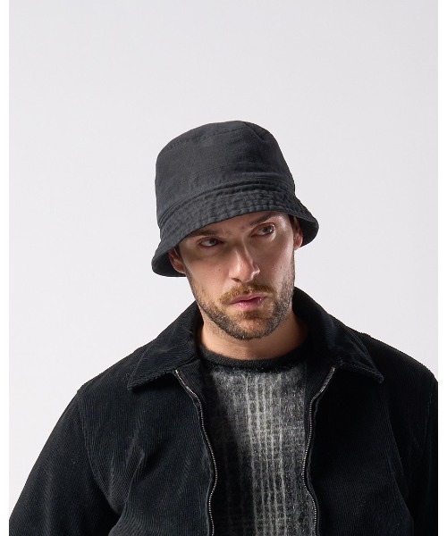 ・ストリート色の強いアイテムを、wjk独自の解釈で一から作製した新型バケットハット。製品加工による独特な表情感がヴィンテージライクな仕上がりとなっている。・ワークキャップ同様、芯なしブリムを採用。着用することで自然にカーブが生まれるよう、ブリムの長さもミリ単位で調整。・ヨーロッパ古着のウールジャケットの生地をリプロした、二重織モールスキンを採用。綿麻混紡糸を使用し、毛焼き無しで仕上げることで、程よい肉感かつウールライクなドライでざらっとした独特な肌触りを再現している。・col.69(d.khaki)、97(charcoal)は製品でストーンバイオ加工を施すことで、よりリアルなクタり、ハードな質感を与えヴィンテージな表情に仕上げている。col.99(black)は反応染めによりソリッドな印象に仕上げた。・内側の「すべり」をパイル生地にする事で着用時のフィット感や汗止めといった機能面にも一役かっている。・内側の「すべり」裏のアジャスターテープにより、頭回りの広さを調整可能。