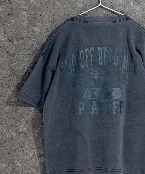 今季注目したいピグメント生地を使用したオーバーサイズロゴTシャツ。 ヴィンテージ感漂う、着るほどに優しくなじむソフトな素材感も魅力。 ■スタイリング■ 色褪せた色味を、おもいっきりアメカジテイストで楽しみたい1枚。 ワイドパンツやショートパンツと相性抜群です。 バックプリントとピグメント加工がおしゃれに見せてくれます。 ■素材感■ ヴィンテージ風の風合いが印象的なピグメント染め素材。 程よい生地の厚さで肌なじみが良く、サラっとした爽やかな着心地。 ポリエステル65% 綿35% ■ディティール■ 伸縮性:あり 【お買い物をお楽しみいただく為に】 ▼商品のお気に入り登録 完売カラーの再入荷通知や、ラスト1点の通知、セールの通知も受けることができます。 ▼ブランドのお気に入り登録 新商品や再入荷等、いち早くブランドのお得な情報を受け取ることができます。