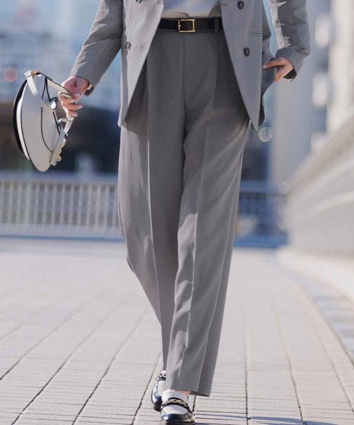 春こそ新調したいスーツは気負わず軽やかに装うこなれシルエット体形カバーがうれしいセミワイドパンツは、センタープレスがきちんと美脚見えして、実はウエスト後ろゴム仕様のプルオンタイプ。軽やかな着心地で、しわが気になりにくいのもうれしいところ。オンにもオフにもロングシーズン使えて、着まわし力も優秀です。プランナーからのコメント―生地の厚さ:ほどよい厚みです。―透け感:ありません。―伸縮性:生地の織りにより、ややあります。―コメント:きちんと見えする美脚パンツです。同素材のジャケットとセットアップで着ていただけます。お仕事シーンやふだんはもちろん、単品でも活躍します。◆ボトムス対応サイズ◆S/SPサイズ相当:ウエスト58~64cm ヒップ82~90cmM/MPサイズ相当:ウエスト64~70cm ヒップ87~95cmLサイズ相当:ウエスト69~77cm ヒップ92~100cmLLサイズ相当:ウエスト77~85cm ヒップ97~105cm3Lサイズ相当:ウエスト85~93cm ヒップ102~110cm4Lサイズ相当:ウエスト93~101cm ヒップ107~115cm※フェリシモの商品には、紐などでくくられている紙タグは付属しておりません。
