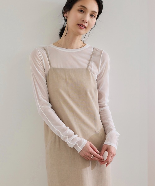 涼しげな透け感とストレッチ素材で快適、重ね着を楽しめるシアー/レーストップスー Effortless Elegance ー(エフォートレス エレガンス) 「忙しい毎日にちょうどいい。ラクしておしゃれが叶う服」 気負わず、気張りすぎないけれど、女性らしさのあるアイテムのラインアップ。ON/OFF問わず着まわせて、お手入れも簡単なイージーケアアイテムで、毎日のおしゃれをもっと快適に。 【デザイン・シルエット】 袖山とプリンセスラインに切り替えがあり、シンプルなシルエットながらも女性らしさを感じるデザインです。お好きな素材で重ね着をお楽しみいただけます。 【おすすめのスタイリング】 ジャケットやトップスの中に着用し、重ね着を楽しむスタイリングリングがおすすめです。 【素材】 ストレッチシアーは涼しげな透け感のある素材で、チクチク感が少ないのが特徴。 ストレッチレースは波打つような凹凸感のある素材で、ストレッチシアー同様チクチク感が少ないのが特徴。 ※カラーにより素材が異なります。 ・ブラック(01)/ホワイト(10):ポリエステル100% ・ブラック系(02)/ホワイト系(11):綿 60% ナイロン36% ポリウレタン4% ---------------------------- 透け感:あり 裏地:なし 伸縮性:あり 光沢感:なし 生地の厚さ:薄手 ポケット:なし 開き方:かぶり ---------------------------- 【モデル情報】 モデル身長:171cm 着用サイズ:F ※画像の商品はサンプルです。実際の商品と仕様、加工、サイズが異なる場合がございます。 ※撮影場所やライティング、お使いのモニター環境によって色の見え方が異なる場合がございます。 ※商品のカラーは画像の色味をご参照ください。動画は仕様説明のため、色味が実物と異なる場合がございます。