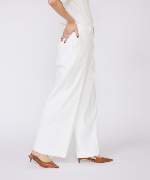 ■デザイン人気の美脚ワイドパンツをインベルトつきにアップデート。インベルにすることでスタイルをより良くみせ、ベルトを通して着られることでおしゃれ度もUP。バックウエストゴムで、ストレスフリーな穿き心地。リラックス感のあるセミワイドシルエットでハイウエスト位置で引き締めることですっきりとした印象に。タイトなトップスとはもちろん、ブラウスやTシャツをタックインしこなれ感のある着こなしもおすすめ。パンプスからサンダルまでどんなシューズともバランス良く合わせられオンオフ問わず幅広く活躍してくれる万能なアイテムです。■素材白や淡色でも透けにくく、吸水速乾性にも優れた性質のシェルタリングドライの糸と、綿麻の糸を組み合わせることでドライタッチと柔らかな風合いに仕上げた麻混ストレッチオックス素材です。※素材特性上、麻のネップ、フシがあります。・ポケットあり・ウエスト後ろゴム仕様・水洗い可