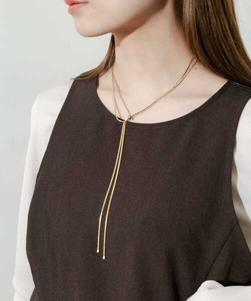 【洗練された雰囲気を2WAYで楽しめる】 ●エレガントな印象になる華やかなゴールド ●二種類の着用方法を楽しめる ●しなやかなスネークチェーンが大人っぽい 二種類の着け方が楽しめるスライド式ネックレス。 平らなスネークチェーンの煌めきが華やかさもあり、コーディネートを洗練された印象にアップデートしてくれます。 気分に合わせて着け方を変えながら毎日のコーディネートに取り入れていただけます。 【2025 Spring/Summer】【25SS】 ※金属アレルギー症状が出にくいチタン、ニッケルフリー素材、ステンレス等を使用しています。すべての方にアレルギーが起こらないということではありませんので、万が一アレルギーの症状が出ましたら直ちに使用を中止してください。 ※メッキ製品(特に銀メッキ)は変色しやすいため、こまめなお手入れで防止してください。長期放置やスプレー香料などの同時使用は、特にお避けください。 ※メッキ製品は、アレルギー体質の方や体調が低下している方など、かぶれることがあります。肌に異常を感じた時はご使用をお止めいただき専門医にご相談ください。 ※アクセサリーは壊れやすいものです。取り扱いに注意していただき大切にご使用いただけるようお願い申し上げます。 総重量 : 約12.5g ※商品画像は、光の当たり具合やパソコンなどの閲覧環境により、実際の色味と異なって見える場合がございます。予めご了承ください。 ※商品の色味の目安は、商品単体の画像をご参照ください。 ▼お気に入り登録のおすすめ▼ お気に入り登録商品は、マイページにて現在の価格情報や在庫状況の確認が可能です。 お買い物リストの管理に是非ご利用ください。 -