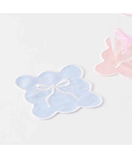 リボンの刺繍が施されたスカラップのかたちのコースターです。デザイン性がありつつ落ち着いた色味なのでグラスやマグに合わせやすいデザインです。トレンドのリボンのプリントや 3D のリボンがかわいいおうちカフェシリーズ。プレートやグラス、ティーポットやカップ&ソーサーなど、豊富なアイテムをご用意しているのでライン使いがおすすめです。お気に入りで揃えて、のんびりおしゃれに自分だけのカフェタイムをお楽しみください。【注意事項】■洗濯:可■ドライ:不可■乾燥機:不可■アイロン:可■撥水加工:有■素材の性質上、洗濯後に多少縮みが生じることがあります。■刺繍部分に飛び糸がある場合は、カットしてください。強く引っ張ると刺繍部分が解れる可能性があります。■刺繍部分へのアイロン掛けはなるべくお避けください。■洗濯は優しく手洗いをお願いします。■長時間のつけ置きや洗濯後に濡れたまま放置しないでください。■蛍光増白剤・漂白剤は使用しないでください。■直射日光やライトに長時間照らされると変色する場合があります。■原産国:中国