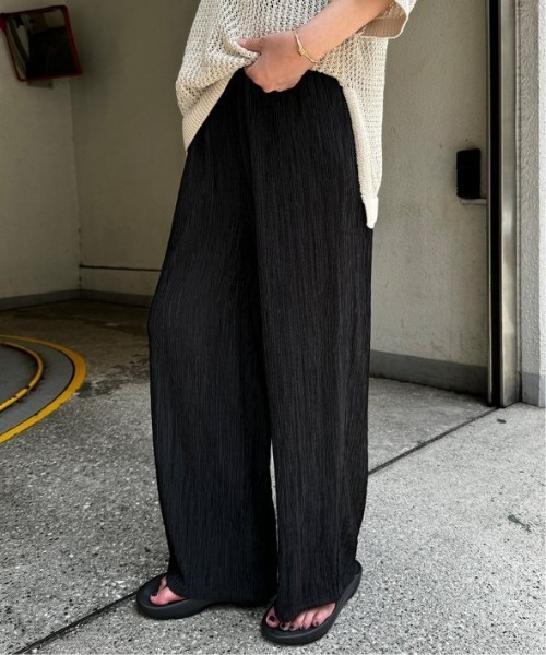 ウエストゴム仕様で、リラックスした着心地を実現したエアプリーツワイドイージーパンツ。プリーツ加工で縦ラインが強調され、ワイドシルエットながらもスッキリとした印象です。【素材】細やかなプリーツ加工。【デザイン】ワイドストレートのイージーパンツ。総ゴムで履き心地抜群。【ポイント】布帛ならではの軽さとプリーツ感がベーシックで使いやすい。ダークカラーを中心にコーデのアクセントになるテラコッタが新色追加!