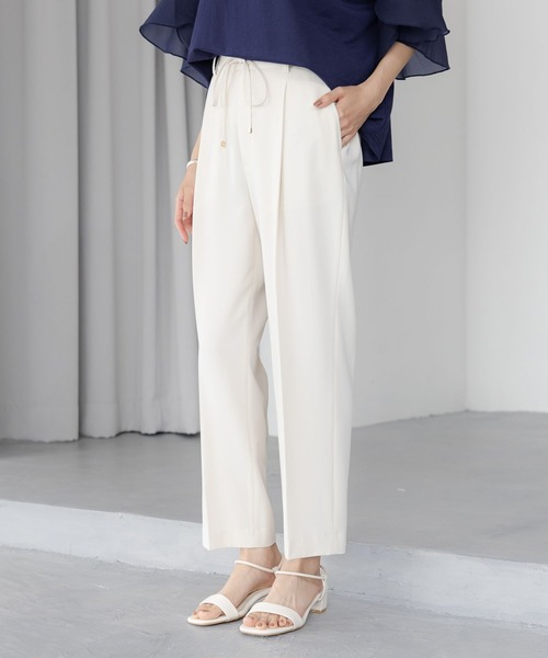 名品 夏でも楽ちんに履けるキレイメパンツ ※低身長さん向けElkotona(エルコトナ)サイズあり ラクにはけてキレイ見えが叶う優秀なテーパードパンツ!! サラリとした肌ざわりと程よい肉感で履き心地も抜群。 ウエスト位置からまっすぐ落ちるすっきりシルエットが、脚のラインをきれいに見せてくれます。 タックとセンタープレスが入ったフロントデザインで、 お腹周りがすっきり見えるのも大人の為のこだわりポイント。 ベーシックなカラー展開で通勤にも着回しやすいマルチなパンツです。 ーーー ◆スタイリング 同素材のジレと合わせたキレイメなスタイリングは 通勤シーンにおすすめ。 今年らしく着るなら スウェットと合わせたスポーティーなスタイルもオススメです♪ 【素材】 ・夏でも快適に履けるサラリとした素材感で着心地も◎ 【悩みに“効く”ポイント】 ・ハリのある素材と足をきれいに見せる優秀設計 ・ハリのある素材感とシルエットで身体のラインをひろわない 【気になる商品は「お気に入り」登録を】 ハートマークをクリックし、お気に入りに登録すると 在庫残り僅かの通知や、再入荷通知などの情報を受け取ることができます。