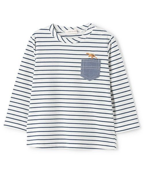 ポケットの上に刺しゅうしたスピノサウルスが可愛い長袖Tシャツです。 全色ボーダー柄でカジュアルな雰囲気に仕上げました。 ボトムのテイストを問わず、着回しが効くアイテム。 ベーシックなデザインなので、デイリー使いに重宝します。 ※80、90サイズのみ肩開き 【透け感】透けない 【生地の厚さ】普通 【伸縮性】あり 【裏地】なし 【ポケット】あり 【アジャスター】なし