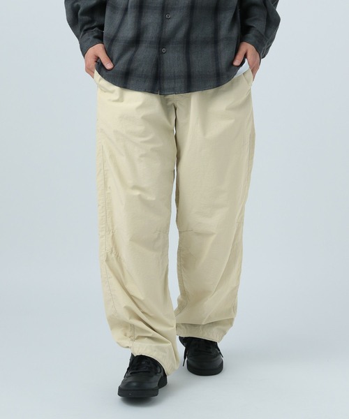 日常のバディー(相棒)になるような着回しのいいアイテムを目指したBAYFLOW BUDDIES Dept.シリーズ ーーー POINT [1] トレンドのパラシュートパンツを大人なサイズ感にアップデート [2] コットン×ナイロンの高密度で軽めな生地感 [3] ハリのある素材感なので、肌離れも良くロングシーズン快適に [4] 裾を絞れるので着こなしの幅を広げられる ーーー [fabric] コットン×ナイロンの高密度で軽めな生地感。 ハリのある素材感なので、肌離れも良くロングシーズン快適に。 [design] トレンドのパラシュートパンツを大人なサイズ感にアップデート。 膝にはニーダーツを取り、実用性もありながら立体的なシルエットはコーディネートのアクセントにぴったり。 裾を絞れるので着こなしの幅を広げられる。 [styling] ボリュームのあるシルエットなので、トップスはコンパクトなものを合わせてAラインに仕上げるとトレンド感のあるスタイリングに。 シャツ合わせはもちろん、加工感のあるTシャツと合わせたBAYFLOWらしい着こなしも◎ ------------------------------------- ≪お買い物をよりお楽しみいただくために≫ ◆商品のお気に入り登録(ハートマークをクリック) 完売カラーの再入荷通知や、完売間近の通知、セールの通知も受けることができます。 ◆ブランドのお気に入り登録 新商品や再入荷など、いち早くブランドのお得な情報を受け取ることができます。 -------------------------------------