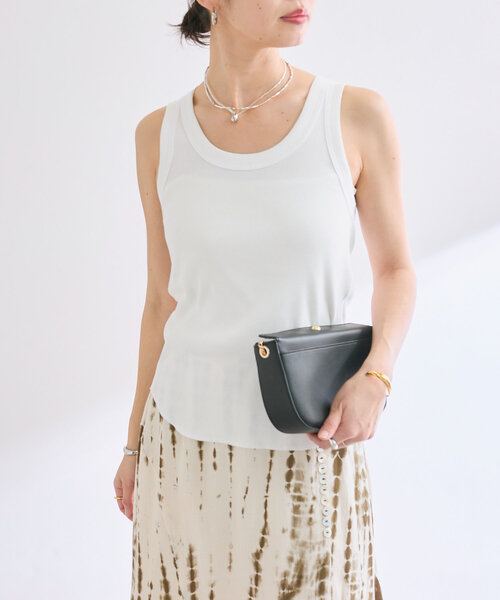 着回し力抜群の2wayタンクトップ●デザイン前後2wayで使用できるリブタンクトップ。ソフトなタッチときれいな表面のテレコ素材を使用し、ヘルシーな印象に仕上げました。締め付け感のない優しい着心地もポイント。タンクトップは、Uネックタンクとアメスリタンクの異なる表情で着用可能。着回し力が抜群なので、様々なアイテムのインナーとして使っていただけます。マシンウォッシュ可能です。●素材綿 100%洗濯方法:洗濯機弱洗い可(湯温40度まで)透け感:オフホワイトややあり裏地:なし伸縮性:あり生地の厚さ:ふつう光沢:なし--------------------------------------------------------------------------------【注意点】※画像の商品は光の照射や角度、お使いのモニター環境により、 実物と色味が異なる場合がございます。※入荷状況により、お届け予定が前後する場合があります。※工場の生産の都合上、納期が変更になる場合がございます。検品や輸送の関係で、発送日が前後しますのでご了承ください。また、入荷状況により、お客様への発送が店頭販売より遅れる場合もございます。※追加生産商品は、一部の店舗、通販で販売中の場合がございます。 予めご了承下さい。※サンプルでの撮影、計測をしております。商品の仕様が一部変更になる場合がございます。※撮影サンプル品はブランドタグがついておりません。製品にはタグがつきますので、製品の表に縫い糸が見える場合がございます。----------------------------------------------------------------------【お買い物をもっと便利に楽しく♪】●「商品のお気に入り登録」で・・・ラスト1点や再入荷の通知が届きます。登録して頂いた商品だけが対象となる、あなただけのタイムセールが開催されることも!●「ブランドのお気に入り登録」で・・・新商品や再入荷など、いち早くブランドのお得な情報を受け取ることができますので、ご登録をおすすめします!--------------------------------------------------------------------------------