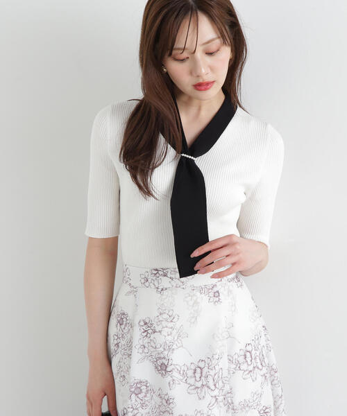 華やかなパール調リングがポイントのボウタイニットです。パール調リングは取り外しが出来、ボウタイをひと巻きしてラフに垂らすのもおすすめ。きれいめスカートやパンツ合わせできちんとスタイルにも、デニムパンツ合わせでキレイめカジュアルにも着回せます。<素材>さらっとした糸を使用しています。<詳細>仕様・開閉なし裏地・なし透け感・なし / 光沢・なし / 伸縮性・あり 生地の厚さ・普通※モデルの着用画像の場合、光の当たり具合により、実際の色味と異なって見えることがございます。色味は、商品単体の画像をご参照ください。<商品のお気に入り登録>お気に入りアイテムの値下げ・再入荷・在庫1点などの通知を受け取ることができる便利機能ですので気に入ったアイテムはお気に入り登録がおすすめ!<ショップのお気に入り登録>新商品や再入荷、セール、クーポン配布などお得な情報を受け取ることができます。●撮影はサンプル商品で行っている為、仕様とサイズが異なる場合がございます。●スタジオ及び屋外で撮影した着用画像は、光の当たり具合で色味が違って見える場合があります。予めご了承ください。