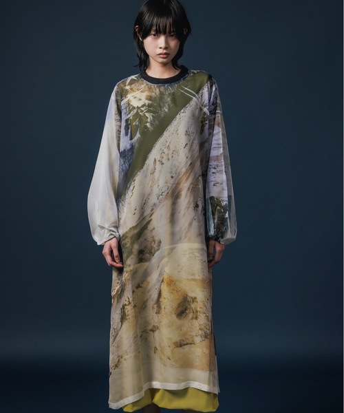 NON TOKYO 2025 F/W "CHASING A STAKES DREAM" シアー素材にプリントが入ったプルオーバーワンピース。 落ち感と透明感のある極薄地のシフォンにダイレクトにプリ ントを施している為、1点1点見え方が異なります。 レイヤーするアイテムで見え方がかなり変わるので、透け感を楽める1枚です。 袖はボリュームがあり、ふんわりとしたシルエットが特徴です。 MODEL H176 着用サイズFREE NON TOKYO 2025 F/W "CHASING A STAKES DREAM" 「CHASING A STAKES DREAM(賞金の夢を追う)」 “下町のギャンブラーの生き様”を着想源に、競馬場にいる人々のファッションのカオスさと、 “Y2K”的な文脈がルーツの最近の世界的な若者のファッションに類似性を感じたところから広がったコレクション。 「ロマンティックレジャー」をコンセプトに掲げ、日常遣いはもちろん、キャンプ、スポーツなど、様々なアクティビティでの着用を想定したNONTOKYOらしいスタイルで表現。 裾にチュールのフリルをあしらった防水素材のフィッシングベストや、襟をファーで彩りウエストをシェイプしたドカジャン、 小型のポーチがぶら下がったウエストポーチ、競馬場や旅先で捉えた風景や植物、馬などの写真を鮮やかにプリントしたファブリックを用いたアイテムも数多く登場しました。 ANLIO OFFICIAL、ZOZOTOWN ANLIO にて在庫発売 ANLIO OFFICIAL→会員10%割引、ZOZOTOWN →paypay、ZOZOポイント 各ショップによりサービス内容が異なります