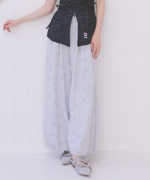 NVY、PNKはUSAGI ONLINE限定カラーとなりますオリジナルのリボン+小花柄をプリントしたワイドパンツ。生地はやや薄手のミニ裏毛を使用しています。ウエストにタックとギャザーを入れてボリュームを出し、カジュアルになりすぎないようにデザインしました。ウエストはゴム仕様なのでストレスフリーな着心地で、ウエストに通した紐でサイズ調節が可能です。透け感;なし裏地;なし伸縮性;あり光沢感;なし生地の厚さ;普通※照明の関係により、実際よりも色味が違って見える場合があります。またパソコン・スマートフォンなどの環境により、若干製品と画像のカラーが異なる場合もございます。予めご了承ください。商品の色味は、商品単品画像をご参照下さい。 ※商品画像はサンプルのため、色味やサイズ等の仕様に変更がある場合がございますので、予めご了承ください。