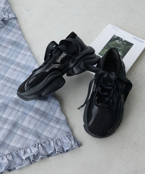 大人気のボリュームソールシリーズにサテン・メッシュリボンバレエスニーカーデザインが登場!スポーティー×フェミニンなルックスがトレンドライクな1足バレエシューズの要素を取り入れた主役級サテン・メッシュデザインのリボンボリュームソールスニーカークラシカルなバレエシューズを思わせるデザインにカジュアルな要素をプラスした厚底バレエスニーカー。トゥシューズのようなデザインが女性らしさを引き立てつつ、ボリュームソールや異素材切り替えデザインで甘くなりすぎないこだわりの1足に。靴ひも部分にはサテンリボンを使用し、上品な雰囲気をプラスしました。軽やかな履き心地で長時間歩いても疲れにくく、厚底でスタイルアップも期待できるのが嬉しいポイント。スニーカーの快適さはそのままに、足元をぐっと華やかに見せてくれるオールシーズン活躍するメリージェーンです。【RECOMMEND STYLING】シンプルなスタイリングに合わせるだけでこなれ感がぐっとアップする存在感抜群な1足。サテンタイプはチュールフリルワンピースやレーススカートと合わせて、バレエコアなスタイルに。メッシュタイプはTシャツにデニムなど定番のカジュアルなスタイルにはもちろん、シアートップスにスラックスなどモードなコーデとも好相性◎甲の部分が広く開いているのでスタイリングのアクセントにレースソックスやカラーソックスを合わせていただくのもアクセントになりおすすめです。■サイズ仕様S…22.5~23.0cm相当, 足幅:約7.9cmM…23.0~23.5cm相当, 足幅:約8.0cmL…23.5~24.0cm相当, 足幅:約8.1cmLL…24.0~24.5cm相当, 足幅:約8.2cm■重量:両足約520g(Mサイズ)【ボリュームスニーカーソールシリーズ】▼ボリュームソールメリージェーンスニーカーサンダル商品コード: 81391044ブランド品番: FObu200▼ボリュームスニーカーソールコインローファー商品コード: 86178625ブランド品番: FObu209▼ボリュームスニーカーソールリボンバレエシューズ商品コード: 90423730ブランド品番: FOsn002▼メッシュ ボリュームソール スニーカーサンダル商品コード: 92055955ブランド品番: FOsd175※横幅がやや小さめな作りの為、幅が気になる方は普段よりワンサイズアップがおすすめです。※撮影画像は、光の当たり具合で色味が違って見える場合がございます。また、ご覧になっているデバイスやモニター環境によって、実際の色味と多少異なって見える場合がございますので予めご了承をお願いいたします。【forksy./フォルクシー】あなたに(for)気取らない(folksy)ファッションを。自分らしさ×トレンドを実現させる。ナチュラルに、でも洗練されたおしゃれを提供。≪お買い物をお楽しみいただくために≫▼商品のお気に入り登録完売カラーの再入荷通知や、ラスト1点の通知、セールの通知も受け取ることができます。▼ブランドのお気に入り登録新商品や再入荷等、いち早くブランドのお得な情報を受け取ることができます。