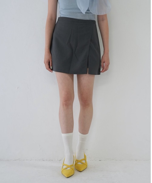 シルエット美人を叶える、万能ラップ風ミニスカート。韓国ガールの定番アイテム、今季の主役はこれで決まり。・すっきり見えを叶える、ラップ風デザインが魅力のミニスカート。シンプルながら美シルエットにこだわった一枚で、毎日の着こなしに抜け感とトレンド感をプラスします。・アシンメトリーなフロントカットがポイント。さりげない肌見せで脚を長く、細く見せる効果も◎タイトすぎないシルエットで動きやすく、カジュアルからキレイめまで幅広く活躍します。・後ろウエストには目立たないファスナー付きで、着脱もスムーズ。腰まわりももたつかず、トップスインスタイルもすっきりキマります。・さらっとした生地感で季節問わず使いやすく、シワにもなりにくいから通勤・通学にもぴったり。シンプルながらもきちんと感を演出できる、頼れる定番ボトムです。カラーは着まわしやすい2色展開。・ブラックはモードで大人っぽく、どんなトップスとも相性抜群。 韓国ガール風にスウェットやポロシャツと合わせて、足元はソックス+ローファーでスクール風にまとめても◎・グレーは知的で上品な印象に。 シャツやブラウスを合わせれば、オフィスカジュアルやきれいめ通学コーデにも活躍します。・おすすめのスタイリングは、ショート丈トップスとのバランスコーデ。キャップやスニーカー、リュックを合わせれば韓国カフェ風ガールに。パフブラウスやニットと合わせれば、フェミニンな大人ガーリーにもシフトできます。・季節を問わずロングシーズン活躍し、オンオフどちらでも着こなせる優秀アイテム。“着るだけで今っぽく見える”シルエットにこだわった一着で、着回しの幅を広げてみてください。-----------------------------------------------------------------▼商品のお気に入り登録お気に入りアイテムの値下げ・再入荷・在庫1点などの通知を受け取ることができます。 ▼ブランドのお気に入り登録新商品や再入荷、セール、クーポン配布などお得な情報を受け取ることができます。