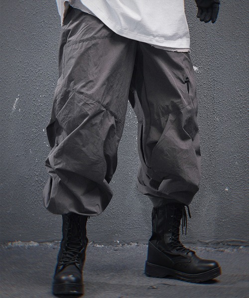 テック系 バルーンカーゴパンツ ■Design ミリタリー×ストリート×テック系のナイロンカーゴパンツ 極太のバルーンシルエットに裾リブ仕様で、存在感ある立体的なフォルムが魅力 内ももに入ったタックディテールが、シルエットに独特の動きを加え、さりげないこなれ感を演出。 フロントにはブランドロゴのワンポイント刺繍で細部にもこだわり◎ウエストはドローコード付きで着脱も楽々。 ■Detail 素材はポリエステル100%のナイロン生地で、軽量かつタフな“シャカシャカ感”が特徴。サバゲーやアウトドア、キャンプ、フェスなどアクティブシーンでも活躍し、機能性・ファッション性どちらも妥協なし。 ユニセックス仕様でストリート〜テック系ファッションが好きな方にもおすすめ。 ■カラー展開 ブラック、グレー 【吉業重工(よしわざじゅうこう)】 2013年、香港にて5人のメンバーが発足した新進気鋭テックウェアブランド。 日本の伝統的な作業服を近未来的にアレンジし、そこへ忍者や侍、アニメや漫画といったサブカルチャーを落とし込み融合させた、独特な世界観を演出したブランドです。 アメリカやヨーロッパではすでに人気を博し、2020年に日本に上陸しました。 ★商品をお気に入り登録する★ お気に入り登録しておくと、完売商品の再入荷通知を受け取れます。さらに、ラスト1点・セール時にも通知が来るから、買い逃すことがありません! ★ブランドをお気に入り登録する★ 新入荷・再入荷など、WESTSEAでのお得なブランド情報をいち早くお知らせ。