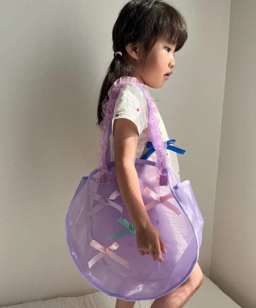 リボンがたくさんついたメッシュのプールバッグです。 持ち手部分にはオーガンジー素材のフリルテープ付き。 メッシュ素材なので通気性も良くお勧めです! 【お気に入り登録】 再入荷通知やラスト1点通知、セールのご案内も受け取ることができます! 【ブランドのお気に入り登録】 新作商品や再入荷情報など、お得な情報をいち早く受け取ることができます! ぜひご登録ください♪