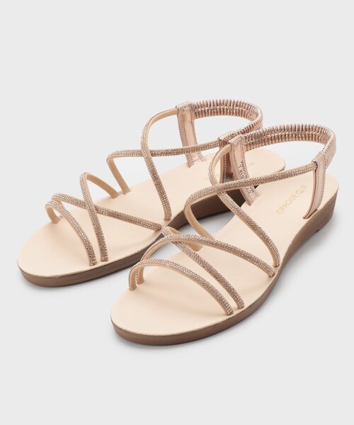 盛夏に向けてトレンドを取り入れた華やかなサンダルが登場・細かいラインストーンをあしらったストラップを使用・華やかな印象ながらトライアルしやすい上品なきらめき・ローヒールで歩きやすく普段使いにもおすすめ・プチプラなのも嬉しいポイント【デザイン】トレンドのビジューキーワードを取り入れたラインストーンのきらめきが華やかな印象のデザイン。きれいめのワンピースやスカートに合うだけでなく、デニムなどのカジュアルスタイリングのポイントとしてもおすすめです。合わせるだけでスタイリングがぱっと華やぐ今季おすすめのプチプラサンダルです。※照明の関係により、実際よりも色味が違って見える場合があります。また、パソコン・スマートフォンなどの環境により、若干製品と画像のカラーが異なる場合もございます。店舗へのお問い合わせ商品番号:C71-22018●製品寸法:02(23.5~24.0cm):ヒール高2.5cm 幅8.8cm プラットフォーム1cm03(24.0~24.5cm):ヒール高2.5cm 幅9.2cm プラットフォーム1cm備考:重量:03(24.0~24.5cm)片足約150g