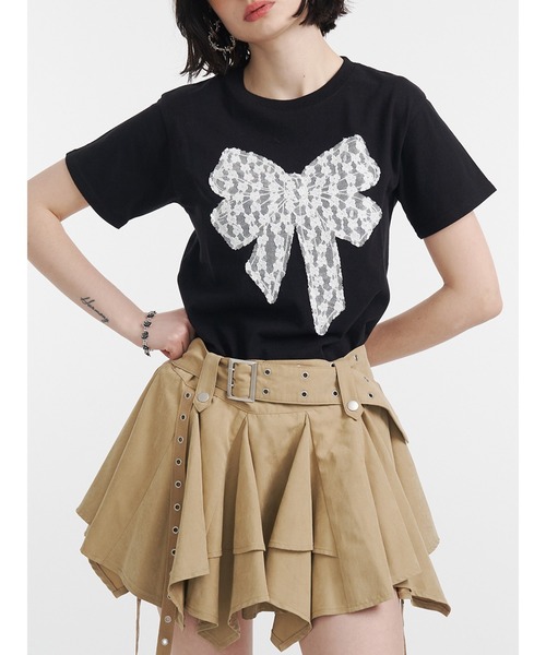 【ポイント】jouetie大人気のリボンTシャツが今季も登場!甘めのレース素材でトレンドのバレエコアコーデにぴったりです♪着心地の良いTシャツ素材でこの夏持っておくと大活躍するアイテム!【ポイント】バルーンスカートやレースパンツを合わせてとことん甘めのスタイリングにするのおすすめ!デニムやブーツを合わせて甘辛MIXにするのもjouetieならではです。どんなボトムスにも合わせやすいサイズ感で、ミニ丈でもロング丈でも着回しできるアイテムです。※着用画像はフラッシュの加減で実際の製品と色味等が異なる場合がございますので、生地のズームアップ画像をご確認ください。※正しいサイズはアイテムサイズ表をご確認ください。※ご利用の端末画面の設定により実際の商品と色味が異なる場合がございます。※商品のお取り扱いについては、脇についている洗濯ネーム類をご確認下さい。【jouetie ZOZOTOWN お買い物ガイド】▼商品をお気に入り登録!♡をクリック!完売商品の再入荷やラスト1点の通知、セール開始時にお知らせ!▼"jouetie(ジュエティ)"をお気に入りブランドに登録!新商品や再入荷など、ブランド最新情報をいち早くお知らせ!